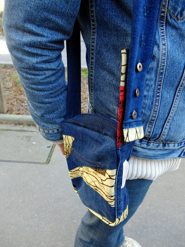 Médina, c’est une sacoche qui a du caractère et une belle histoire à raconter. Cousue main en jean recyclé et chutes de tissu wax coloré, elle marie authenticité et audace dans un design à la fois pratique et élégant.