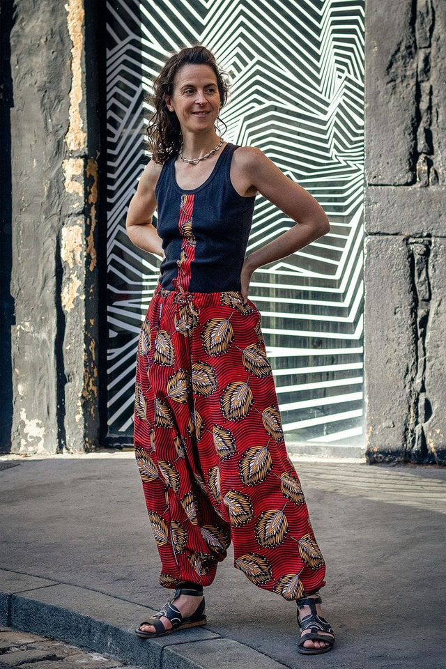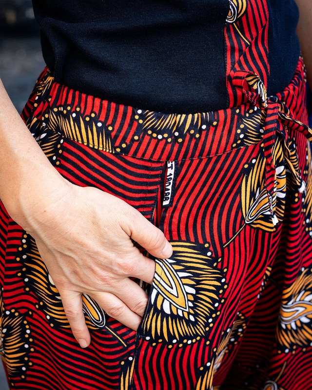 Pensé pour celles et ceux qui cherchent un vêtement à la fois confortable, original, élégant et porteur de sens, ce sarouel est confectionné à la main dans mon atelier à Lyon, dans un tissu wax 100% coton acheté directement au Sénégal.